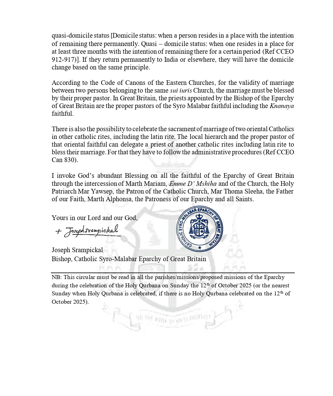 യുകെയിലെ ക്നാനായ കത്തോലിക്ക വിശ്വാസികൾ ഗ്രേറ്റ് ബ്രിട്ടൻ രൂപതയിൽ അംഗമാകുന്നത് വഴി അവരുടെ ക്നാനായത്വം ഒരിക്കലും നഷ്ട്ടമാകില്ലായെന്ന് ഈ സർക്കുലറിൽ വളരെ വ്യക്തമായി പറയുന്നുണ്ട്.