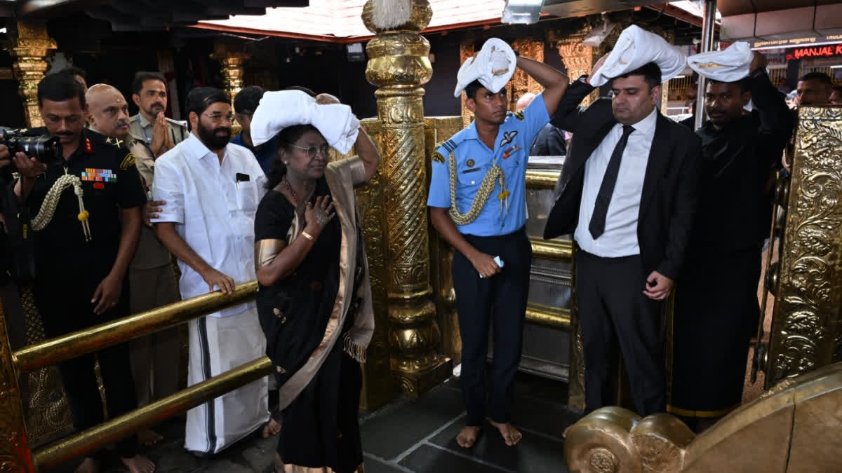 പമ്പയിൽ നിന്നും പ്രത്യേക വാഹനത്തിൽ ഉച്ചയ്ക്ക് 11.45 ന് ശബരിമലയിൽ എത്തിയ രാഷ്ട്രപതിക്കൊപ്പം മരുമകൻ ഗണേഷ് ചന്ദ്ര ഹേമ്പ്രാം, എഡിസി സൗരഭ് എസ് നായർ, പിഎസ്ഒ വിനയ് മാത്തൂർ എന്നിവരും പതിനെട്ടാം പടി ചവിട്ടി. സന്നിധാനത്ത് രാഷ്ട്രപതിയെ ദേവസ്വം വകുപ്പ് മന്ത്രി വി എന് വാസവന്റെ നേത്യത്വത്തിൽ പൂർണ കുംഭം നൽകി സ്വീകരിച്ചു.