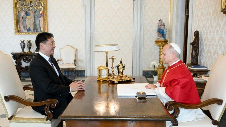 വത്തിക്കാൻ :മംഗോളിയൻ പ്രസിഡന്റ് ഉഖ്നാജീൻ ഖുറേൽസുഖ് വത്തിക്കാനിലെ അപ്പസ്തോലിക കൊട്ടാരത്തിൽ ലിയോ പതിനാലാമൻ പാപ്പായുമായി കൂടിക്കാഴ്ച നടത്തി . പാപ്പായുടെ പ്രസ് ഓഫീസാണ് ഡിസംബർ 4 വ്യാഴാഴ്ച രാവിലെ അപ്പസ്തോലിക കൊട്ടാരത്തിൽ നടന്ന ഈ കൂടിക്കാഴ്ചയെക്കുറിച്ച് ഒരു പത്രക്കുറിപ്പിലൂടെ അറിയിച്ചത്.