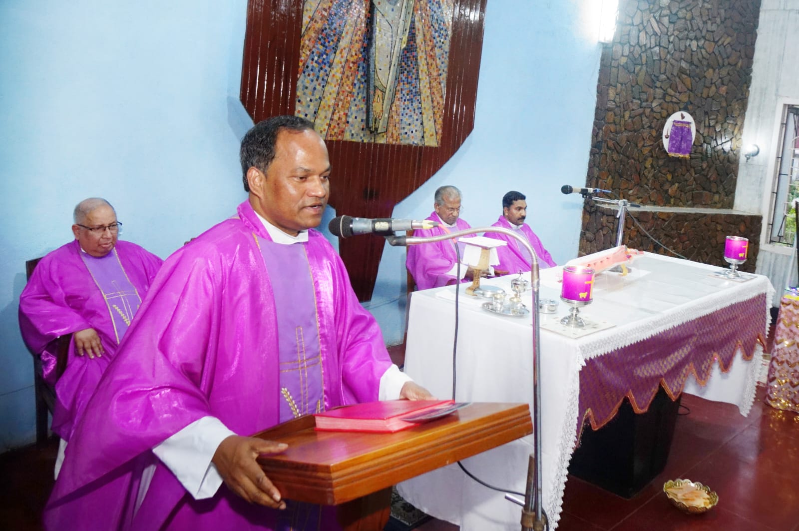 ദൈവദാസൻ ജെറോം മരിയസിന്റെ 34-ആം ചരമവാർഷികചരണത്തിന്റെ ഭാഗമായി കൊല്ലം രൂപത സംഘടിപ്പിച്ചിരിക്കുന്ന പരിപാടികളുടെ ഉദ്ഘാടനം രൂപത ജനറൽ മിനിസ്ട്രി കോഡിനേറ്റർ ഫാ. ജോസ് സെബാസ്റ്റ്യൻ ദീപം തെളിച്ചു ഉദ്ഘാടനം ചെയ്യുന്നു വികാരി ജനറൽ മോൺ.ബൈജു ജൂലിയൻ,മോൺ.ജോർജ് മാത്യു, ഫാ. ടോമി കമാന്സ് തുടങ്ങിയവർ സമീപം-ദീപിക