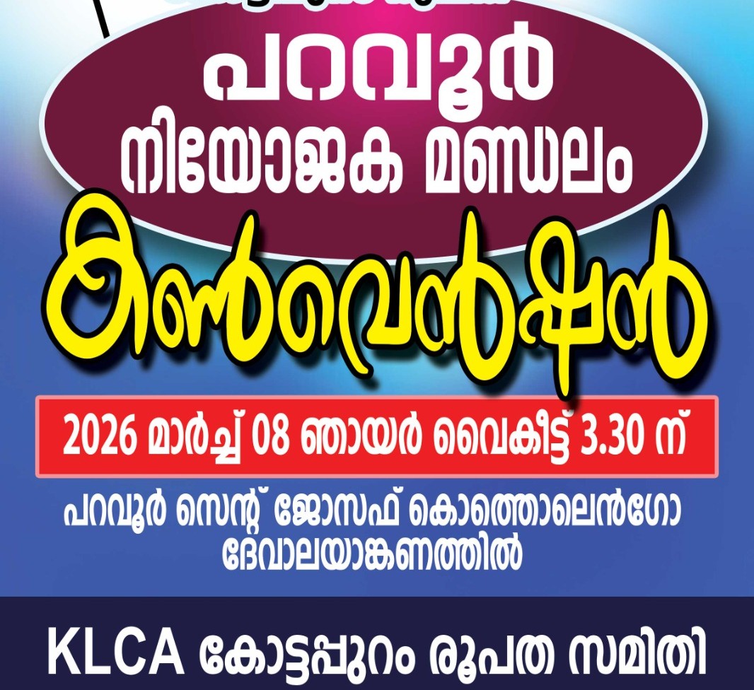 ക്രൈസ്തവ സമൂഹത്തിന്റെ പിന്നോക്കാവസ്ഥയെ കുറിച്ച് പഠിക്കുന്നതിനായി സർക്കാർ നിയോഗിച്ച ജെ.ബി. കമ്മീഷൻ റിപ്പോർട്ട് പൂർണമായും നടപ്പിലാക്കണമെന്നാ വശ്യപ്പെട്ടുകൊണ്ട് കെ.എൽ.സി.എ സംസ്ഥാന വ്യാപകമായി സംഘടിപ്പിക്കുന്ന നിയോജക മണ്ഡലം കൺവെൻഷനുകളുടെ ഭാഗമായാണ് കോട്ടപ്പുറം രൂപത കെ.എൽ.സി.എ പറവൂർ നിയോജക മണ്ഡലം കൺവെൻഷൻ സംഘടിപ്പിക്കുന്നത്.കെഎൽസിയെ കോട്ടപ്പുറം രൂപത പ്രസിഡൻ്റ് അനിൽ കുന്നത്തൂർ അധ്യക്ഷത വഹിക്കും.